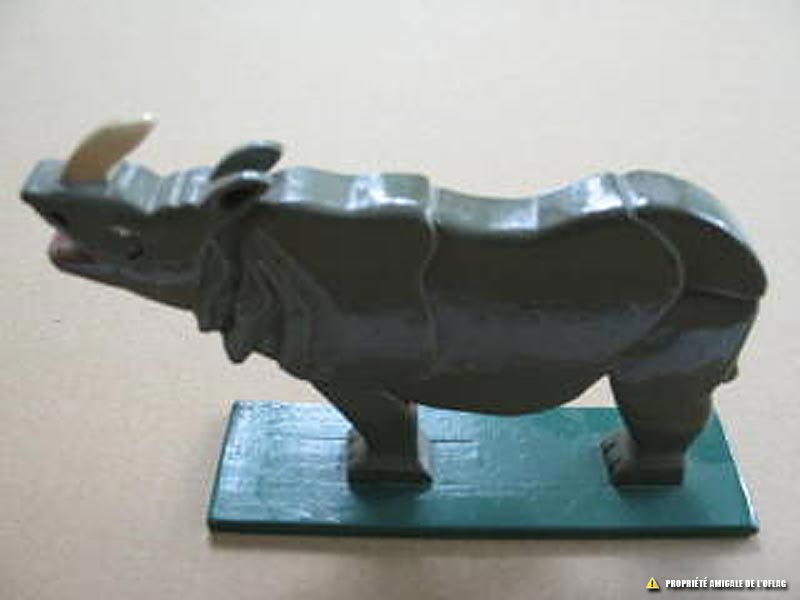 Jouet Rhinocéros, fait partie d'une collection d'animaux jouets fabriqués par un officier prisonnier de l'Oflag IIB-IID pour son fils, à l'occasion d'une des cinq fêtes de Noël passé très loin de sa famille.
