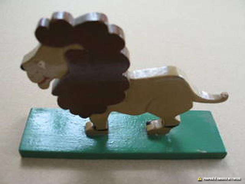 Jouet Lion, fait partie d'une collection d'animaux jouets fabriqués par un officier prisonnier de l'Oflag IIB-IID pour son fils, à l'occasion d'une des cinq fêtes de Noël passé très loin de sa famille.