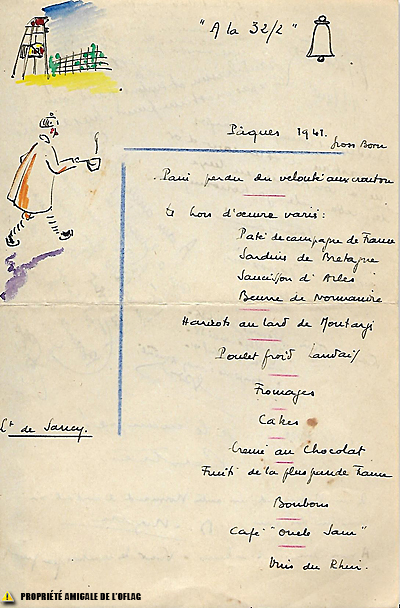 Oflag IID : « room 35 - stube 2 : menu of the Easter meal 1941 » by Henri de SANCY (recto).