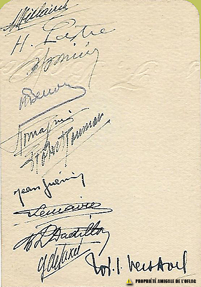 Oflag IID : « Menu świąteczne 1943 » by Henri de SANCY (back).