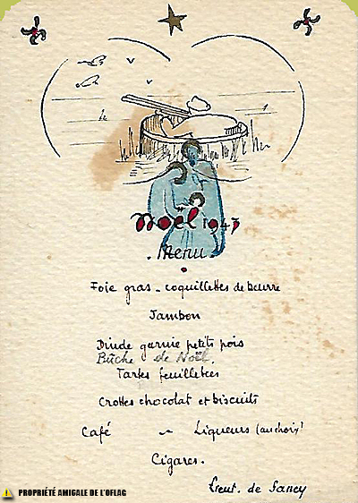 Oflag IID : « Menu świąteczne 1943 » autorstwa Henri de SANCY (recto).