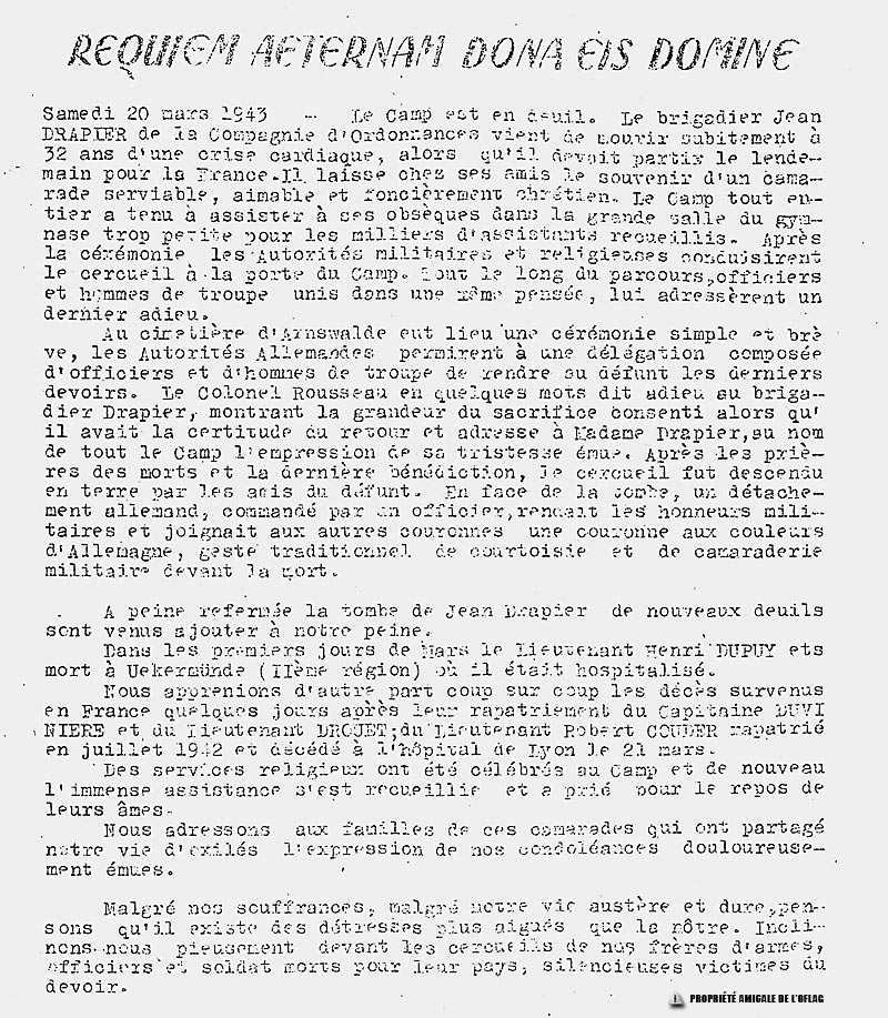 Article paru dans le journal des prisonniers, "Ecrit sur le Sable", le N° 31 du 22 avril 1943.