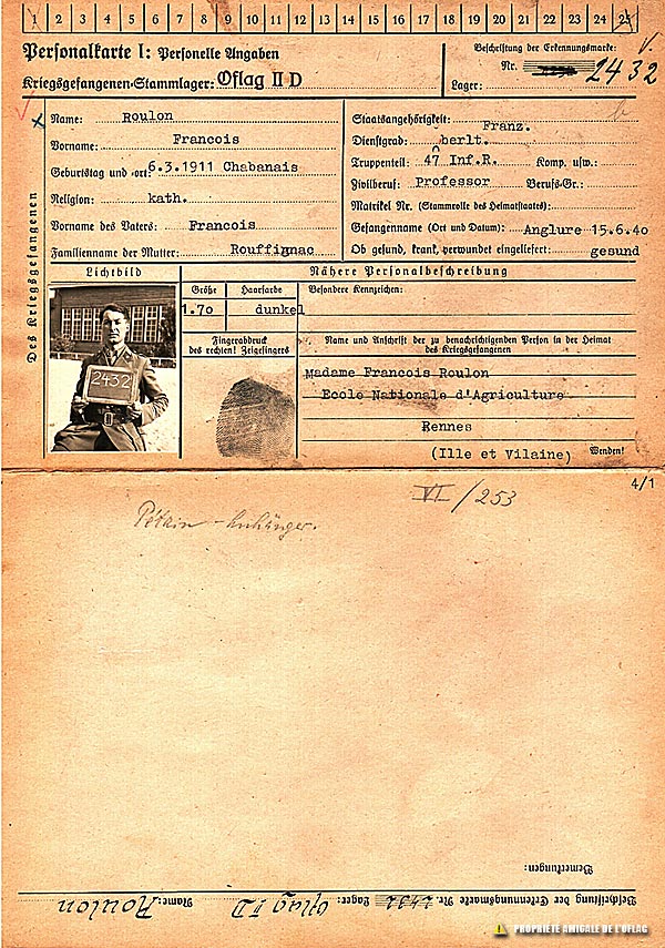 Fiche de police de monsieur ROULON Francois