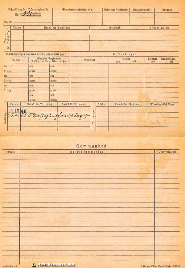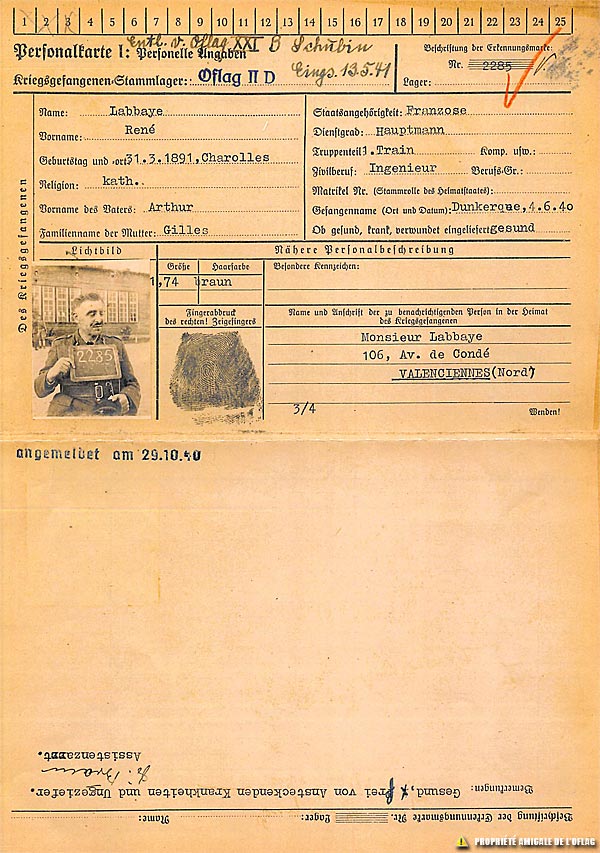 Fiche de police du Capitaine René LABBAYE (recto et verso).