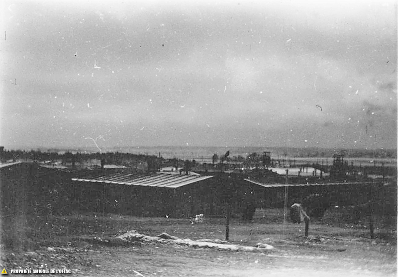 Oflag IID – Gross-Born : une vue du camp vers le sud-est. On aperçoit deux miradors.