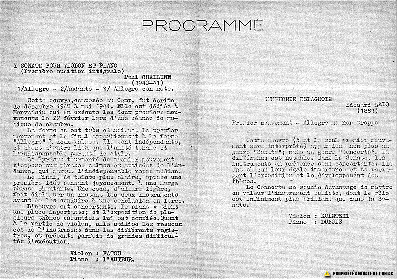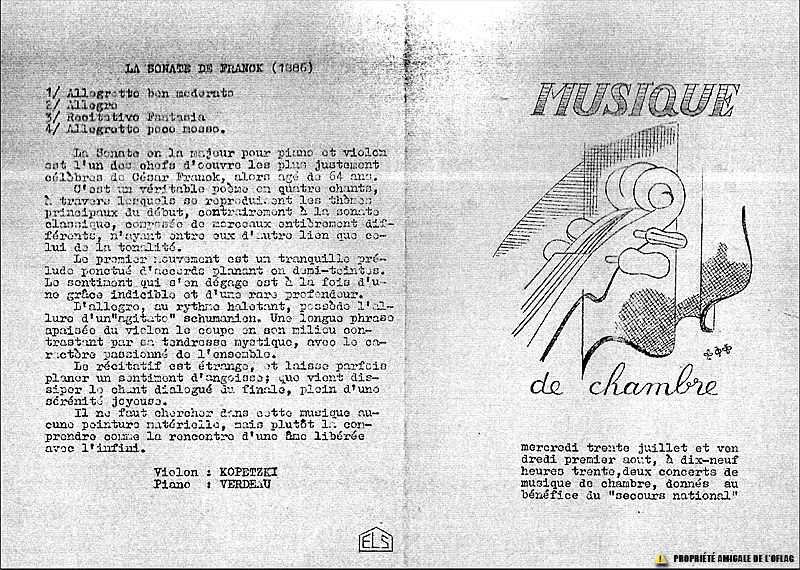 Oflag IID : « concert de musique de chambre - 3 août 1941 » - recto ».