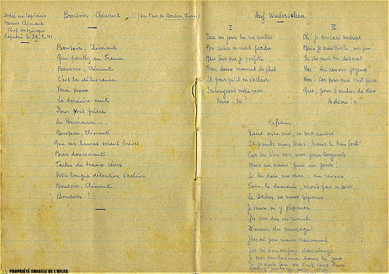 Oflag II D Carnet de chants et textes du Lieutenant René FRAY page 13