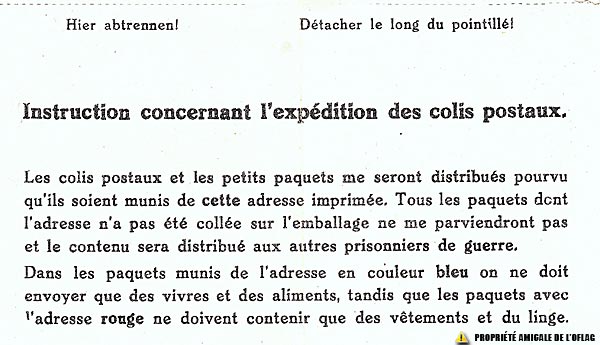 Oflag IID - Gross-Born : document allemande précisant les règles à respecter pour l'envoi de colis aux prisonniers de guerre.