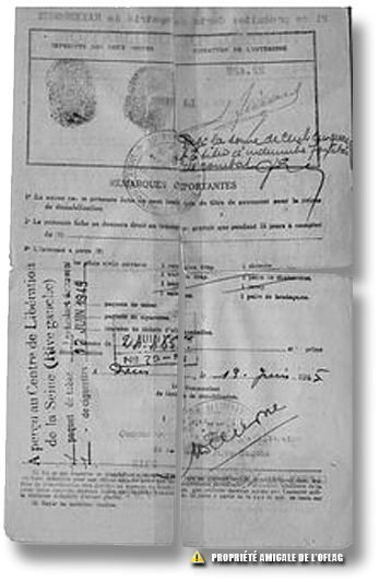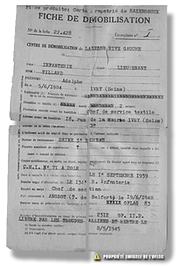 Fiche de démobilisation du Lieutenant Adolphe TRILLARD recto et verso