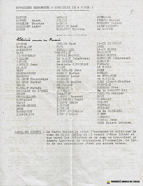 Verso de la circulaire n°4 du Centre d'Entraide de l'Oflag IIB datée du 8 avril 1945, donnant des nouvelles des prisonniers de ce camp.