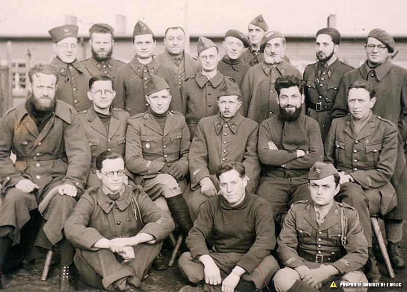 Gabriel Simonnet est accroupi, au milieu entre deux camarades. Il porte un pull-over