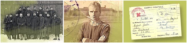 Oflag IID de Gross-Born : Block 3, Baracke 13, Stube 1 : le Capitaine Désiré BLAS est sur le rang des officiers assis, le 3ème en partant de la droite. Le 2ème en partant de la gauche est le capitaine Maurice LESAINT. Le 4ème en partant de la gauche est le commandant Armand GRASSART (Officier dont s'est inspiré Armand Lanoux pour le personnage du « commandant Watrin » dans son livre portant ce nom en titre »). Au 1er rang des officiers debout, le 4ème en partant de la gauche est le lieutenant Abel HENNERE, le 5ème est le lieutenant Victor MARLIOT. Au dernier rang des officiers debout le Lieutenant Jacques HEAULME est vraisemblablement le 5ème en partant de la gauche. Le 6ème est le Lieutenant René DESREMAUX. Le 7ème est le Lieutenant de réserve WEIL. Le Capitaine Désiré BLAS envoie cette photo à Mademoiselle Yvonne RAIMOND - 12 rue Vaucansson - Agen (Lot et Garonne). |