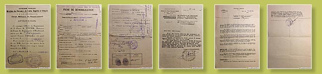 Fiche de démobilisation du lieutenant André BERGERON (pages 1 et 2). Documents de l'école polytechnique adressés au lieutenant André BERGERON dès son retour et qui concernent son avenir.
