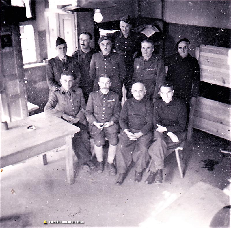 « Schubin - Oflag XXIB : le capitaine DUCHAUSSOY est peut-être le second assis en partant de la gauche »