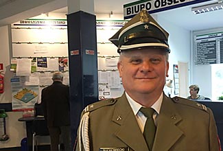 C'est aujourd'hui la cérémonie officielle à la Mairie de Borne Sulinowo. Tenue stricte de rigueur. Adam est en grand uniforme (avec la curieuse casquette militaire polonaise à angles droits qui n'a pas l'air de beaucoup tenir sur la tête). Nous nous rendons en rangs serrés à la Mairie, dans la Salle des Mariages. Les jeunes porte-drapeaux du drapeau du lycée collège des « Héros de l'Oflag IID » sont en train de répéter pour la cérémonie avec grand sérieux.