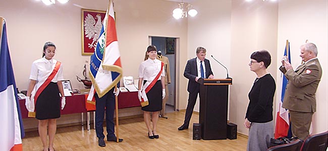 Il m'est difficile de consigner toutes les personnalités présentes, ni surtout tous leurs titres et qualités. C'est Dariusz qui mène la cérémonie, en tant que Président du Conseil Municipal, (élection séparée par rapport à celle du Maire), et Directeur du Musée. Après la cérémonie des drapeaux et les deux hymnes, les discours commencent, et c'est Gabriela qui assure vaillamment la traduction dans les deux langues.