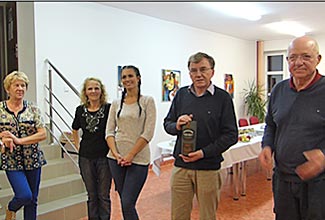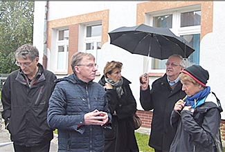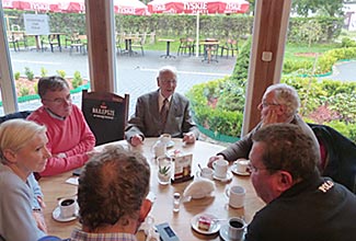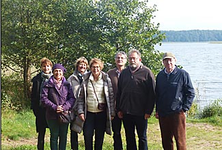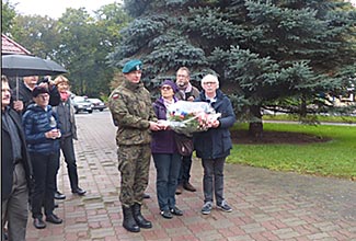 Outre Dariusz Czeniawski il y a Piotr, fils d'un prisonnier polonais et sa femme Alicja, Adam, ancien officier à la caserne de Choszczno mais aujourd'hui en poste dans une autre unité de logistique qui a beaucoup fait pour la mémoire des lieux. Dariusz accueille le groupe avec gentillesse et courtoisie, les dames ont droit au baisemain, pas si fréquent de nos jours ! Il parle allemand et russe, mais pas anglais. Pour notre arrivée, il a fait dresser une table de fête, avec des petits drapeaux polonais, français et européens. Des discours de bienvenue, bien sûr, des toasts improvisés, (les pays slaves ne manquent pas à leurs traditions), et une cuisine traditionnelle délicieuse, (ah le gâteau au fromage blanc !). Nous découvrons l'équipe des Polonaises formidables qui s'occuperont chaleureusement de nous durant tout le séjour. Ce voyage sera aussi l'occasion de rencontrer des enfants de prisonniers polonais (qui ont enduré six ans de captivité) et d'échanger avec eux.