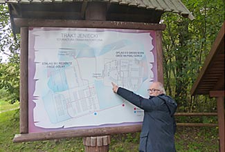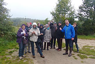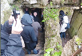 Visite d'un bunker et de ses souterrains, près du lac Smiadowo. Ces passages souterrains faisaient partie de la ligne de défense d'environ 200 km, construite vers le sud depuis la mer baltique à partir de 1930. Lors du Traité de Versailles (28 juin 1919), l'armée allemande avait été restreinte à cent mille hommes, petit à petit, elle s'est accrue à un million. La frontière polonaise du couloir de Dantzig était à environ 50 km. Les Allemands ne craignaient pas les Polonais mais les Russes : ayant perdu à Stalingrad, les Allemands avaient peur que l'armée rouge ne vienne, aussi ont-ils renforcé leur ligne de défense. Les soldats pouvaient se voir d'un bunker à l'autre. De la tour, il était possible de tirer à 360°. À l'époque, la forêt n'existait pas. Il y avait aussi des puits pour une personne, on en voit quelques-uns dans les prés. La coupole métallique de la tour a été volée. La tour avait été comblée de sable, mais à présent, une association de bénévoles la dégage. La partie habitation allemande a été dynamitée. La largeur des murs est d'environ un mètre. Un ascenseur permettait d'y descendre des armes et de la nourriture.