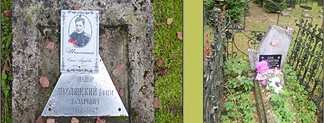 Environ quatre cents personnes ont été enterrées au cours des quarante-sept ans d'occupation soviétique. Deux cent vingt-six ont été identifiées, cent trente-huit portent juste la mention « inconnu ». Étaient-ce des traîtres, des déserteurs ? Le cimetière est situé sur un terrain en pente dans un écrin d'herbe et de forêt ; les nombreuses tombes y sont matérialisées par des triangles de métal portant une inscription identitaire ou la mention « inconnu », posés sur des pierres carrées, évoquant un ordre géométrique incrusté dans la nature. L'effet est assez magique. Ce cimetière est toujours en activité car des Russes sont restés ou se sont intégrés à la population. Les grilles de fer forgé qui entourent certaines tombes proviennent de cimetières allemands dont la croix a été recouverte de l'étoile rouge. Une tombe arbore le motif du chêne, symbole de la ville et de la résistance à la vie. Des tombes d'enfants, par exemple, Khokhriakov Stanislav Grigorievitch (1940-1948), une autre, beaucoup plus récente, Olia Dobanova (1983-1984), avec des jouets qui ont l'air encore plus récents, (sur la photo dans le couloir de notre hébergement, ce sont d'autres jouets). Bondartchouk Vitalyi Konstantinovitch (1947-1949), il y a un petit moulin à vent en plastique moderne. Des symboles pour adultes sur d'autres tombes : un bout de pain et un verre de vodka pour la route. Même après le départ des Russes, le cimetière a été respecté. On n'aperçoit qu'une croix. Les Polonais ont clôturé le terrain pour éviter les dégradations qui pourraient être causées par des animaux sauvages, c'est la commune qui gère l'entretien. Lors de travaux, les ossements trouvés ont été mis dans un ossuaire. À la Toussaint, des gens viennent avec des cierges et des fleurs. Nicolas DELESALLE me dit que si l'on ne peut pas se recueillir sur la tombe de ses proches, on va fleurir des tombes du cimetière de proximité.