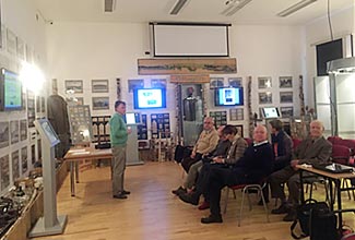 Après une collation, Etienne montre un power point du séjour qu'il vient de faire en Grande Bretagne dans les pas des marins de la France Libre. Une cérémonie eut lieu dans la nécropole de Brookwood proche de Londres où sont présentes dans différents « carrés militaires » des tombes polonaises, belges, tchèque, françaises (Français Libres), et du Commonwealth. A Cowes, sur l'île de Wight où étaient basés les chasseurs de sous-marins de la France libre, une cérémonie eut lieu pour commémorer le 75e anniversaire de la défense de la ville par l'artillerie d'un bateau polonais contre l'aviation allemande bombardant la ville, le Błyskawica, bateau visiblement bien connu par nos amis polonais.