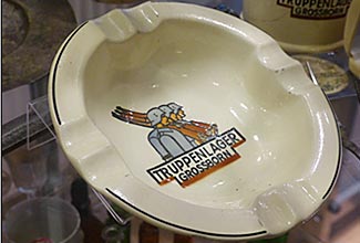 La troisième vitrine La vitrine de droite comporte des souvenirs de soldats allemands : c'est la partie difficile du patrimoine, avec environ sept cent lettres de soldats allemands et les réponses des familles. Des débris de la vaisselle allemande en porcelaine contrastant avec les gamelles en fer blanc des prisonniers français. Entre 1936 et 1941, environ sept cent mille à un million cent mille soldats allemands sont passés là, piètre chair à canon. Précision : un des responsables du musée du mur de Berlin, « Check Point Charlie », le docteur Reine Hildegrand a été gardien de l'Oflag IID, ici à Borne Sulinowo.