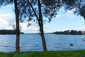 Déjeuner dans un restaurant récent en bordure du lac, le « Marina », très agréable, la terrasse est en forme de bateau à voile. Les bords du lac sont aménagés en plage sablonneuse, bondée en été d'après les photos, aujourd'hui vide, malgré le beau temps. On retourne au Musée/Hébergement à pied, par un chemin ombragé très pittoresque. C'est curieux de voir si peu de monde se promener un dimanche après-midi. Mais il est vrai que la ville n'est pas très peuplée, (4800 habitants), et que les espaces sont vastes.