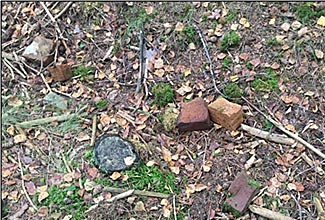 Nous continuons à monter dans la forêt vers les vestiges des quatre baraques suivantes. La nature a repris ses droits, des arbres et des plantes ont poussé mais on remarque malgré tout de grands espaces rectangulaires où le sol est aplani, vestiges des emplacements des anciennes baraques sur lesquels on trouve encore des fragments de briques rouges qui formaient le sol à la base des constructions en bois. Pour visualiser le volume de ces baraques, Etienne demande à quatre participants de se mettre aux quatre coins de l'un de ces espace : c'est vraiment petit ! Il y avait donc cinq baraques dans lesquelles se répartissaient environ sept cents cinquante prisonniers. Une baraque était divisée en quatre Stube (chambrées). Ils étaient alors quarante-huit par chambrée. Le nombre de prisonniers a baissé ensuite, il a été divisé par deux entre le début et la fin de la guerre. De six mille officiers, le camp est passé à trois mille, après que les anciens de la Première Guerre Mondiale, les chargés de familles nombreuses, les sanitaires eurent été rapatriés. Tous les baraquements ont été ensuite détruits par les Soviétiques quand ils sont arrivés en 1945.