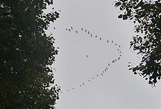 Tout au long de notre voyage nous avons été accompagnés par de magnifiques vols de grues cendrées qui se déployaient en V au-dessus de nos têtes.