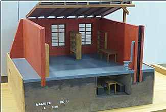 Une maquette de tunnel d'évasion représentant la construction du tunnel. Sous la chambrée, un système de sécurité avait été mis en place : une lumière électrique avait été installée dans le local percé sous la chambrée et le long du tunnel, les deux fils étant reliés à un tabouret de la chambrée. Au moindre risque d'inspection, il suffisait de remuer le tabouret, la lumière s'éteignait et les prisonniers arrêtaient de piocher et de faire du bruit.