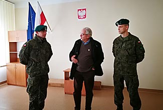 Une pièce Musée (« izba pamięci ») est installée dans l'ancienne Chapelle du régiment dans le bâtiment où était le service postal et les cuisines de l'Oflag IIB. La devise du bataillon est : « Bóg, Honor, Ojczyzna » (« Dieu, Honneur, Patrie »), le drapeau du régiment y est exposé. Au mur, des vues de la caserne du temps de l'Oflag, données par Etienne. Marek ZUCHOWICZ, (officier à la retraite, à présent civil responsable de logistique), a trouvé il y a 14 ans des documents, dans le grenier derrière une porte, pliés en huit du « Comité Gaulliste Républicain » (CGR). (Flament, p. 321). Sur un panneau figure une caricature du Lieutenant Prual et un placard de l'organe du CGR, Espoir, en date du 21 octobre 1944, annonçant la création de ce groupe et l'étendue de son action. Marek offre solennellement à Etienne la photocopie de deux lettres d'un prisonnier français à sa femme que le Lieutenant Maciag (trois étoiles au milieu de la poitrine) a achetées sur internet. Sur un autre panneau, se trouve la photo de l'ancien Président de la République, Lech Kaczyński, sa femme, des dignitaires de l'église et de l'état-major de l'armée polonaise, tués le 10 avril 2010 dans un accident d'avion, en route vers Katyn pour les cérémonies commémoratives des massacres d'officiers polonais. Wojciech me dit que les experts ont conclu que le pilote n'aurait pas dû atterrir à Smolensk pour cause d'épais brouillard, tous les signaux étaient au rouge, il avait été averti mais n'en a pas tenu compte.