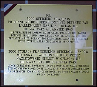 C'est ici que les unités de prisonniers français ont croisé les prisonniers polonais durant les trois jours qu'ont duré les transferts entre prisonniers français de l'Oflag IID et prisonniers polonais de l'Oflag IIB ; les Polonais faisant le chemin inverse des Français. Leurs trains se sont croisés, et pendant deux nuits, des Français et des Polonais ont partagé les mêmes camps. Etienne raconte que lorsque les Français quittèrent le camp de Gross-Born, douze officiers polonais qui les remplaçaient avaient ouvert leur pèlerine, chacun portant une lettre. L'ensemble représentait avec les douze lettres, la phrase « Vive la France ». En guise de remerciement, lors de la commémoration de 2012, treize Français de la délégation portaient les lettres « Vive la Pologne », « Kek jeyé Polska ». Le major Lewandowski, le commandant de l'époque, avait participé à la cérémonie de Choszczno (sur les photos, il a une étoile et deux barrettes noires sur la poitrine).